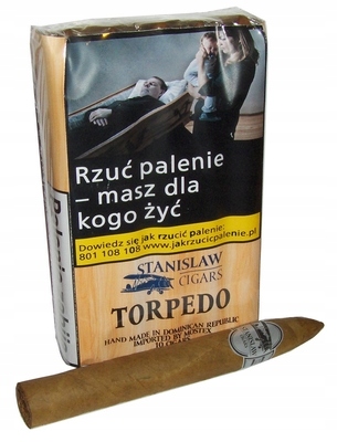 STANISLAW TORPEDO- ręcznie zwijane cygara na Dominikanie, delikatne o pełnym korzennym aromacie wysokogatunkowych tytoni. Doskonały smak zawdzięczają liściom pokrywy typu Connecticut Shade z USA.